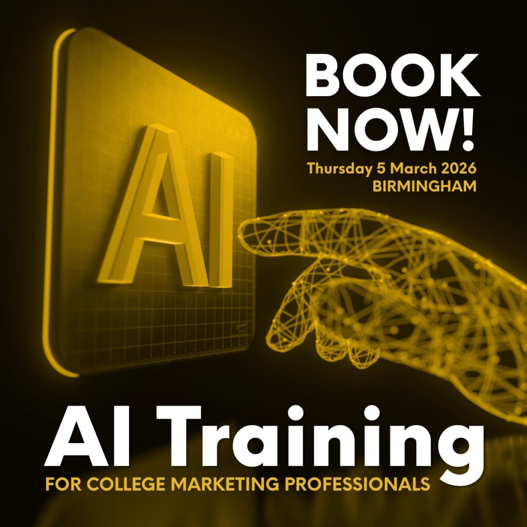 Don’t miss this in-person training, specifically designed for FE marketing professionals, and delivered by Comms and AI expert, Ben Verinder. Read more >>>